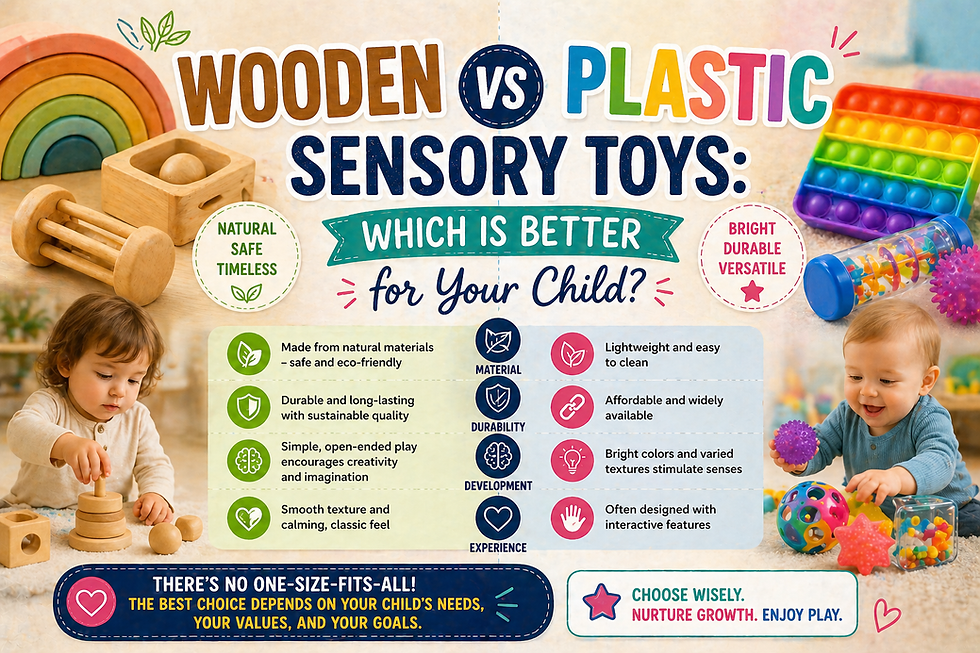 Choosing between wooden and plastic sensory toys is a common dilemma for parents. Both options offer unique benefits, but the right choice depends on your child’s developmental needs, safety and play style.